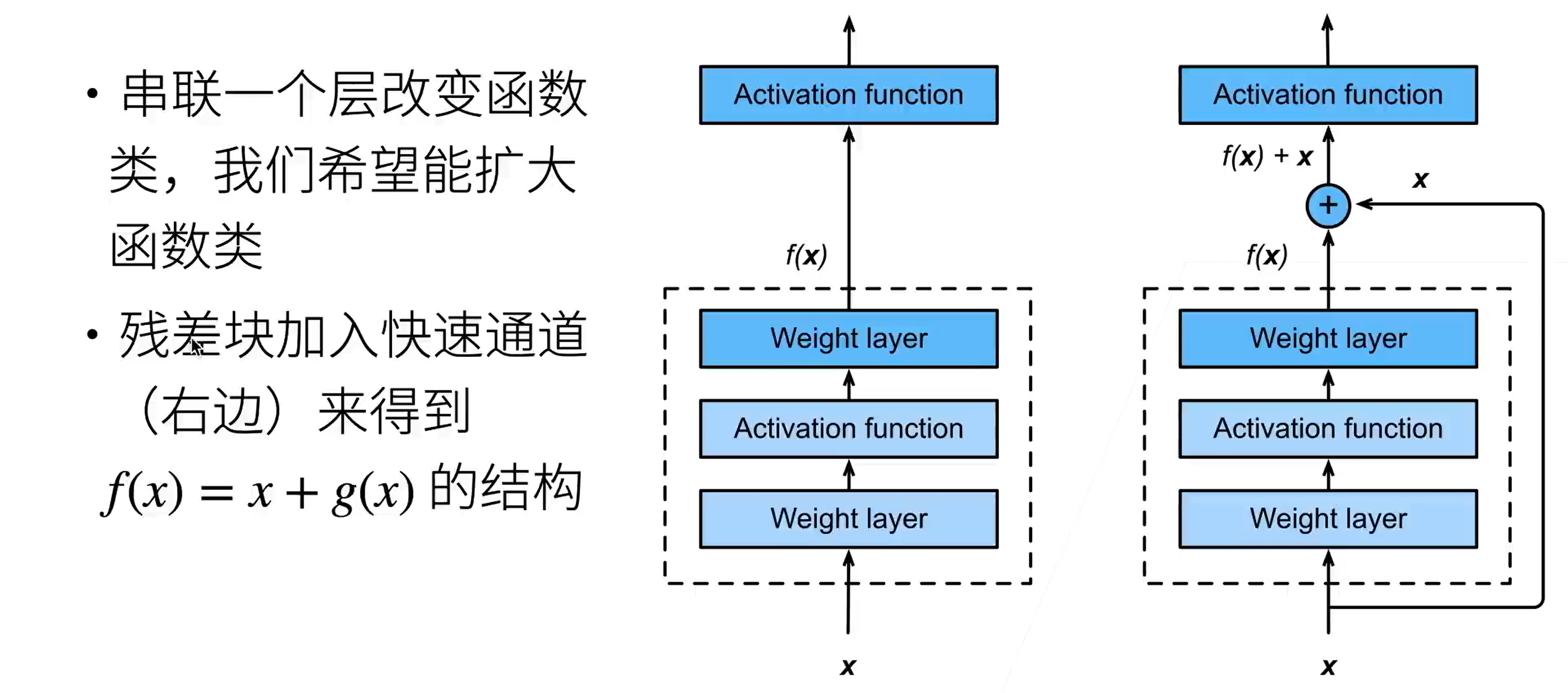 - 如果g(x)没什么用,那么系统后面给它的梯度会很小,它对最后的结果影响就很小了。